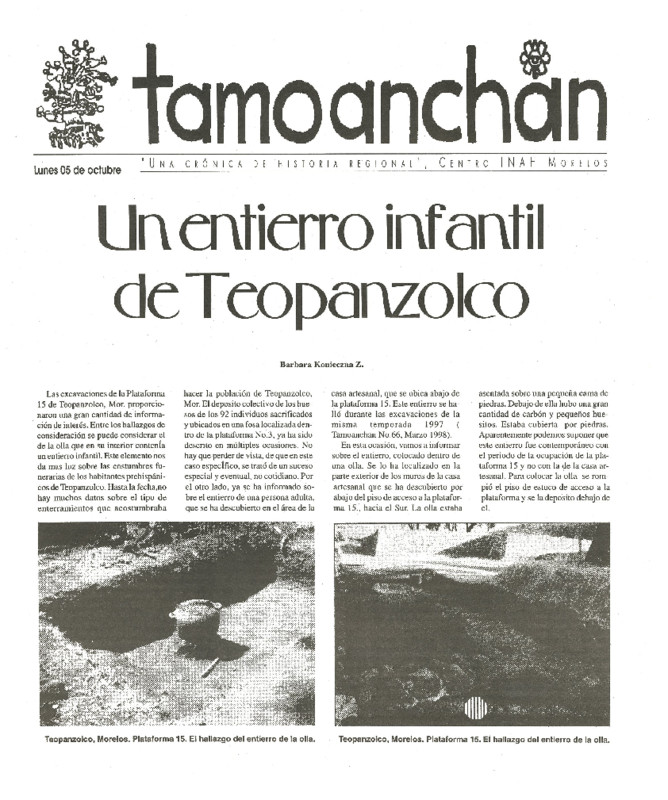 - - Un entierro infantil en Teopanzolco por Barbara Konieczna Zawadzka.