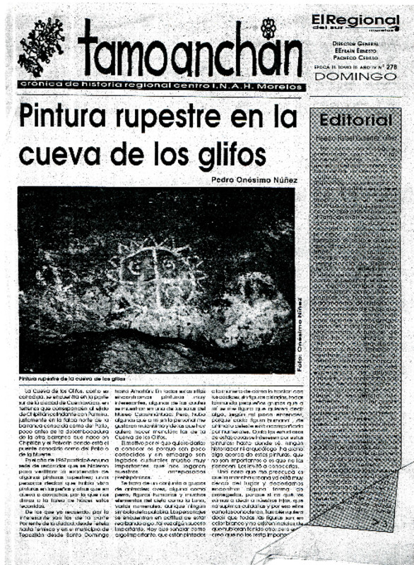 - - Pintura rupestre en la cueva de los glifos por Pedro Onésimo Núñez. - Editorial por Heladio Rafael Gutiérrez Yañéz. - Notas sobre la expedición a las grutas de Cacahuamilpa por Carlos Barreto Mark. - Los monasterios por Heladio Rafael Gutiérrez Yañéz. - Primeros conventos de los dominicos en México.