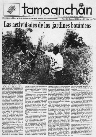 - - Las actividades de los jardines botánicos por Margarita Avilés Flores y Guillermo Suárez Ortega. - El Jardín Borda, reciente restauración.