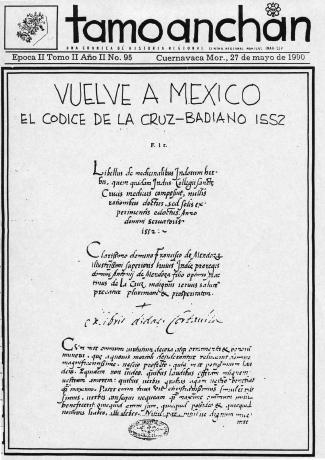 - - El códice Martín de la Cruz-Juan Badiano por Macrina Fuentes Mata.- Transición a sociedades agrícolas por Giselle Canto Aguilar. - Origen de algunas plantas morelense por Heladio Rafael Gutiérrez Yañéz.