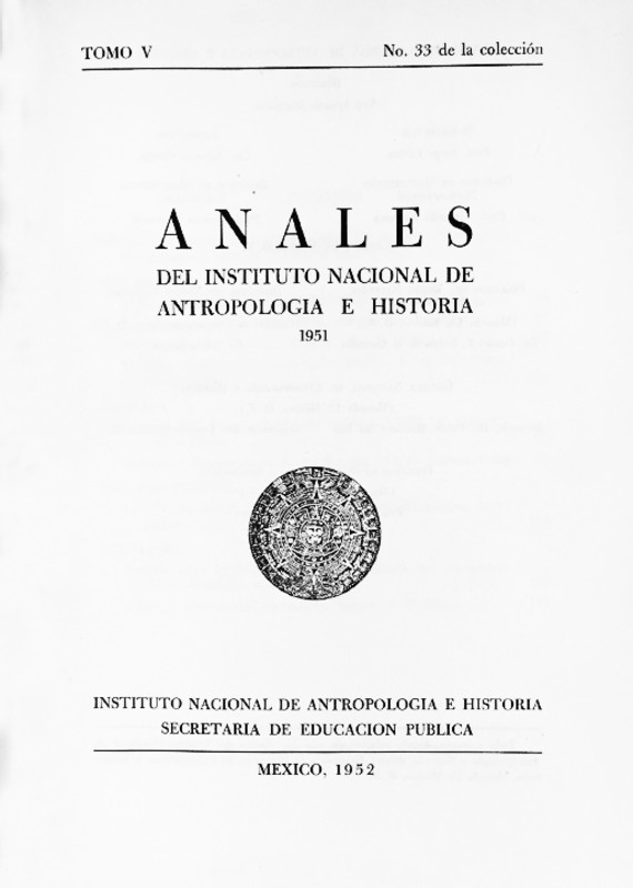 Anales del Instituto Nacional de Antropología e Historia. Num. 33 Tomo V (1951) Sexta Época (1939-1966)