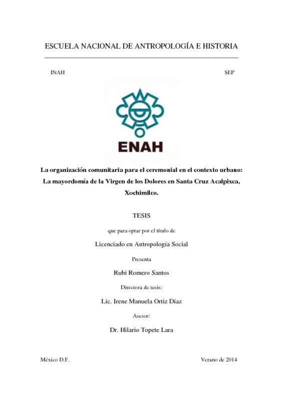 - Tesis para obtener el grado de Licenciatura en Antropología Social