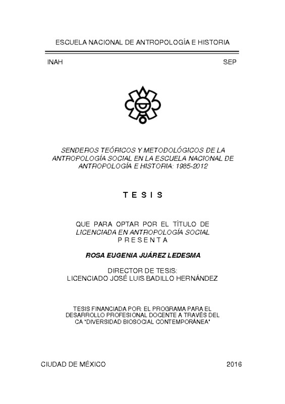 - Senderos teóricos y metodológicos de la Antropología social en la escuela nacional de antropología e historia: 1985-2012