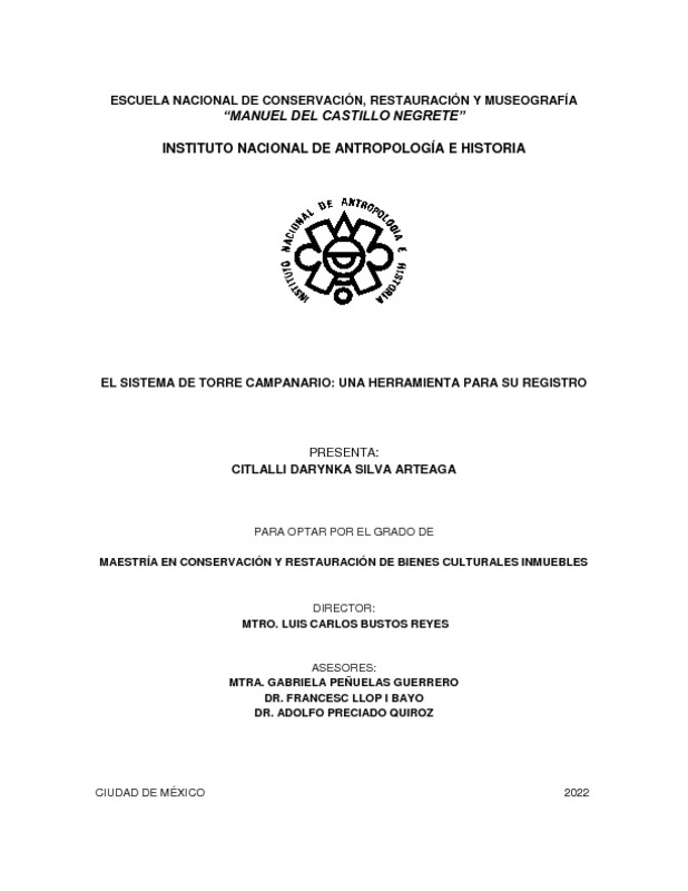 - Tesis para optar por el grado de Maestría en Conservación y Restauración de Bienes Culturales Inmuebles