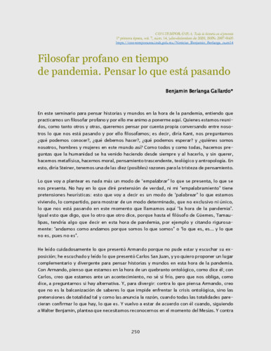 Filosofar profano en tiempo de pandemia. Pensar lo que está pasando ...