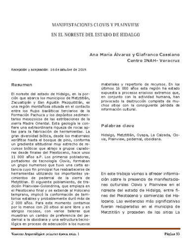 Manifestaciones Clovis y Plainview en el noreste del estado de Hidalgo ...