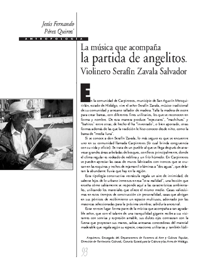 La música que acompaña la partida de angelitos. Violinero Serafín Zavala Salvador ...