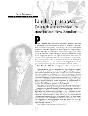 Familia y parentesco. De la regla a las estrategias: una entrevista con Pierre Bourdieu ...