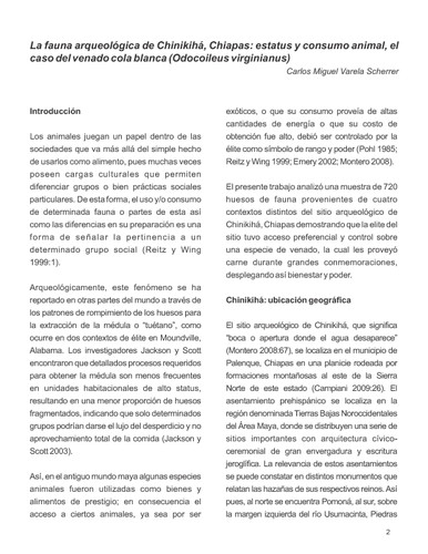La fauna arqueológica de Chinikihá, Chiapas: estatus y consumo animal, el caso del venado cola blanca (Odocoileus virginianus) ...